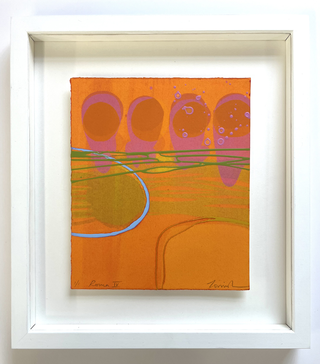 2025 framed monotype screen print and acrylic framed size 29 cm x 26 cm paper size 19 cm x 16 cm