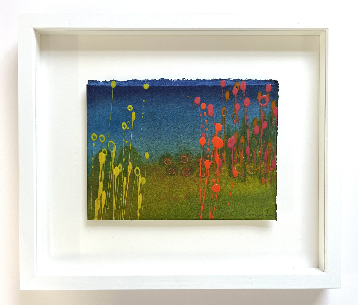 2025 framed watercolour and acrylic on paper framed size 26.5 cm x 31 cm paper size 14 cm x 19 cm